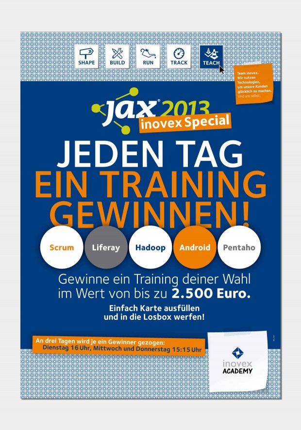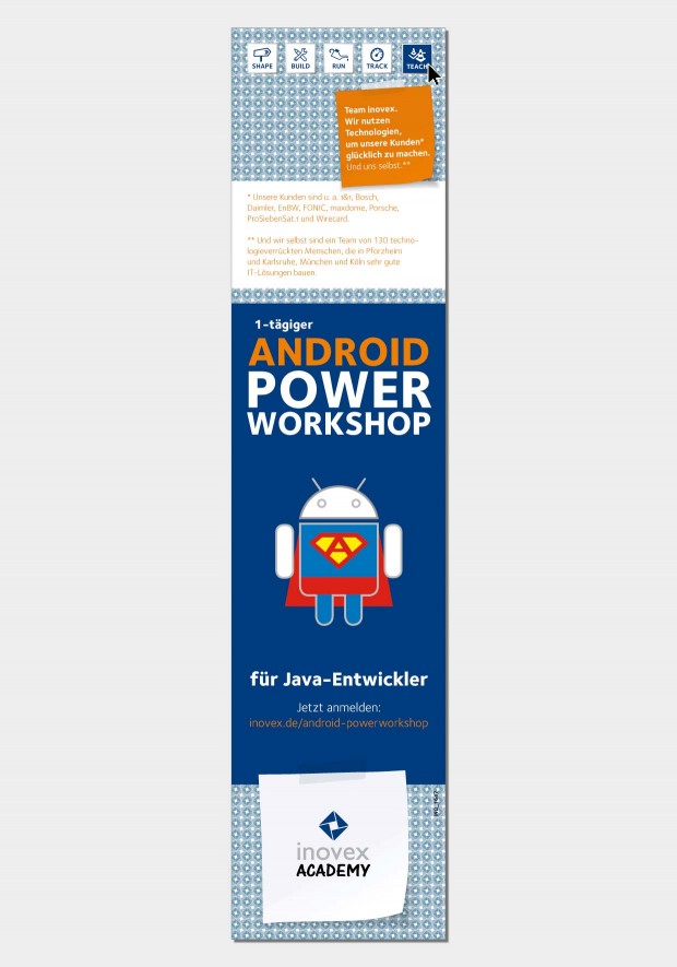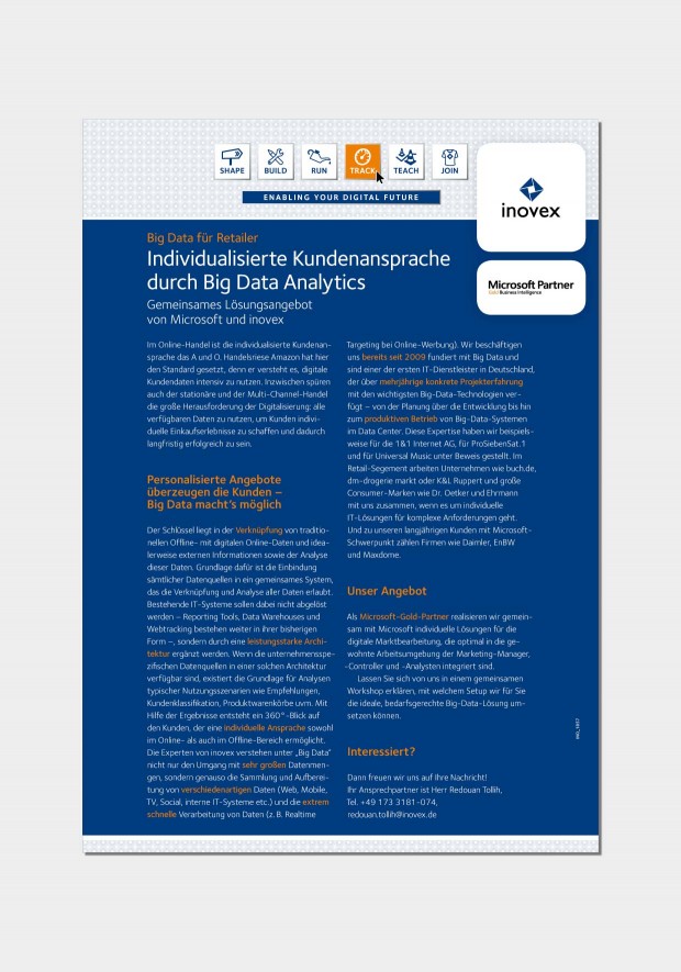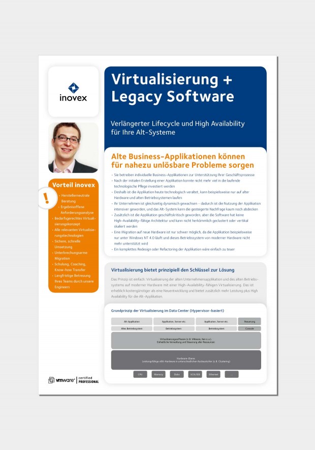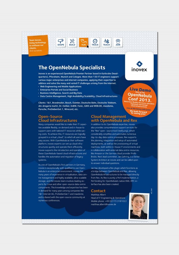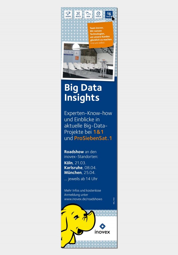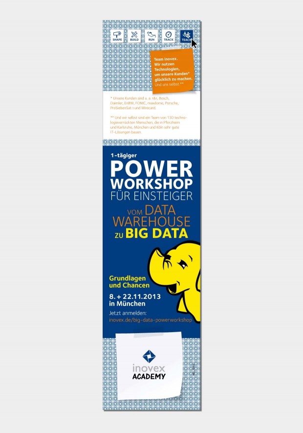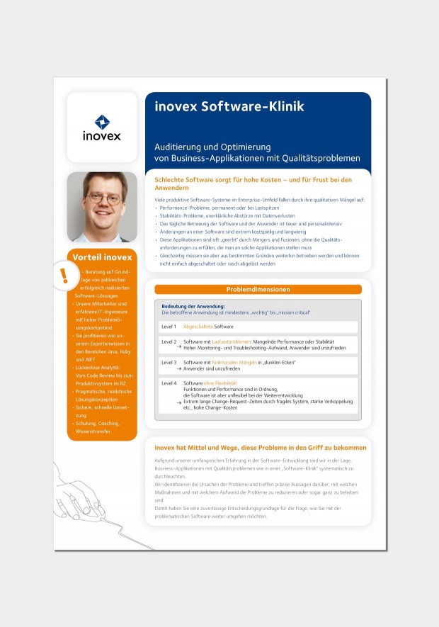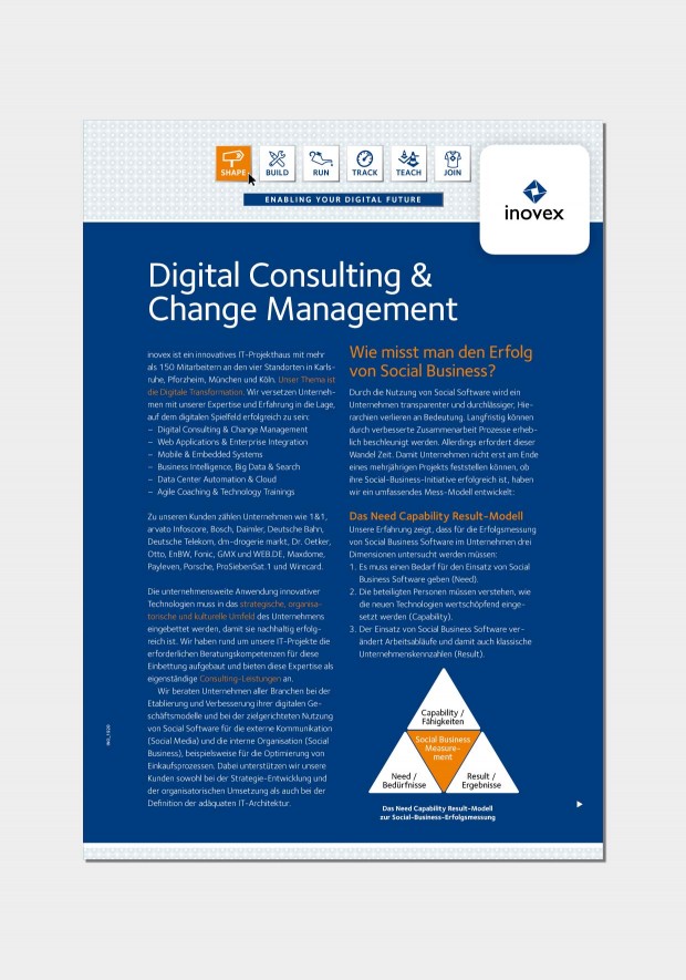 Wir unterstützen inovex seit 10 Jahren bei der Weiterentwicklung des Corporate Designs und erstellen Broschüren, Flyer, Anzeigen und allem was ein dynamisches Unternehmen wie inovex für die tägliche Kommunikationsarbeit benötigt.
