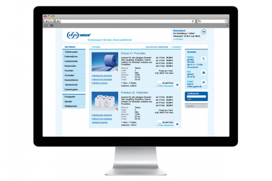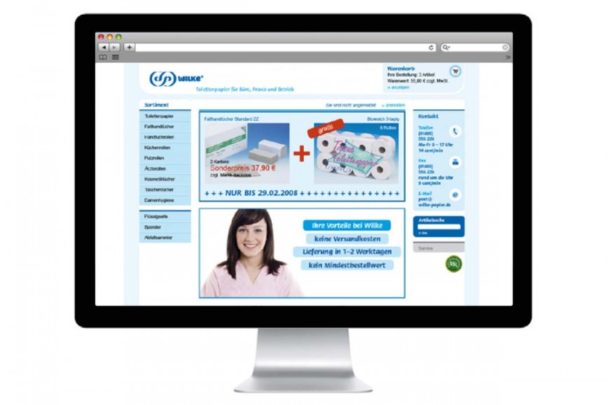 Wilke Hygieneartikel ist einer der führenden deutschen Versandhändler im Hygienebereich. In seinen Online-Shops wird das gesamte Spektrum vom Papierhandtuch bis zur Flüssigseife an gewerbliche Kunden verkauft.